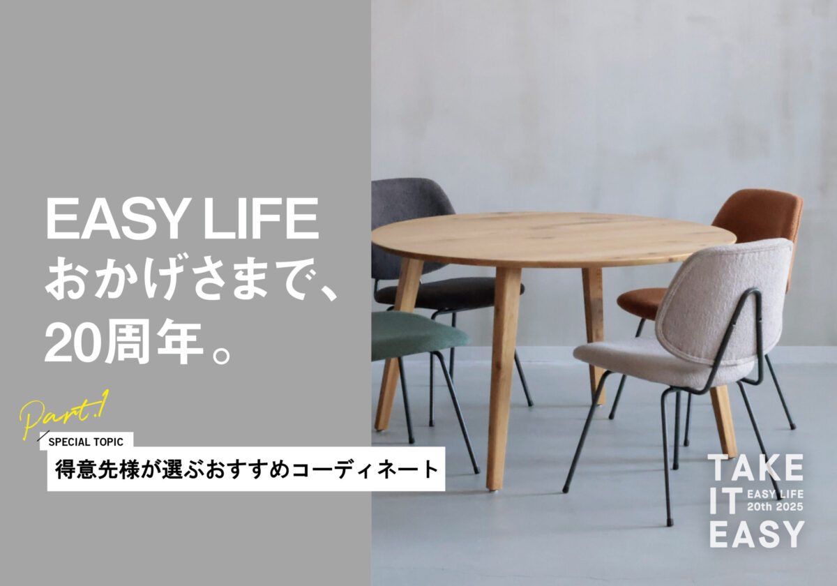 今回は 「EASYLIFE (イージーライフ)」 の20周年を記念して、EASY LIFE (イージーライフ)のダイニングテーブルとCRASHのチェアを組み合わせた