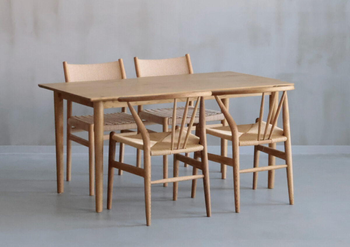異なるデザインのチェアを組み合わせることで、単調になりがちなダイニングに自然なリズムと表情が生まれ、空間全体がナチュラルであたたかみのある印象にまとまります。木の素材感とラタンの軽やかさが調和し、毎日の食卓をより心地よいものにしてくれる組み合わせです。