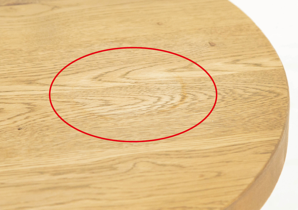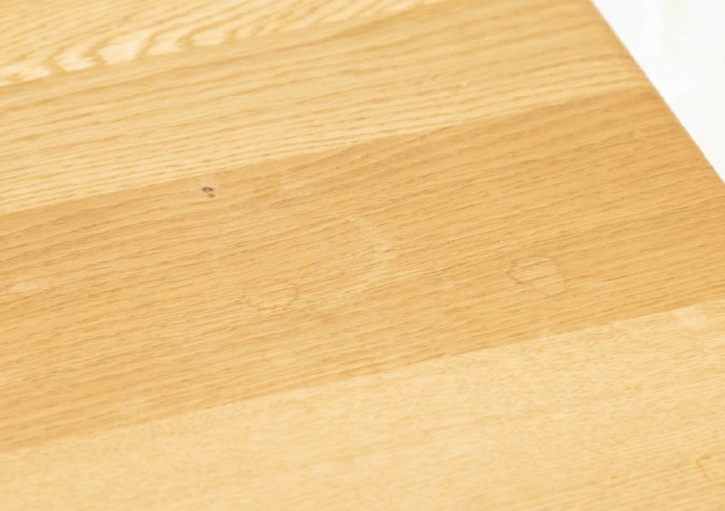 オイル仕上げの天板は、木の風合いやぬくもりをそのまま感じられる仕上げが特長です。表面を膜で覆うウレタン塗装とは異なり、木本来の質感を活かしているため、使うほどに味わいが深まっていきます。オイル塗仕上げの大きな魅力は天板に傷やシミがついてしまった場合、ご自身でメンテナンスができる点です。メンテナンスをすることによって長く愛着を持って使い続けられます。