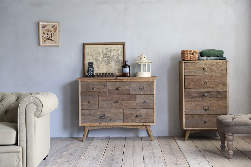 使用している古材は、独特の風合いを残すため、色ムラや釘跡、傷等を味わいとして残しています。同じものは一つとしてない、古材の個性をお楽しみください。